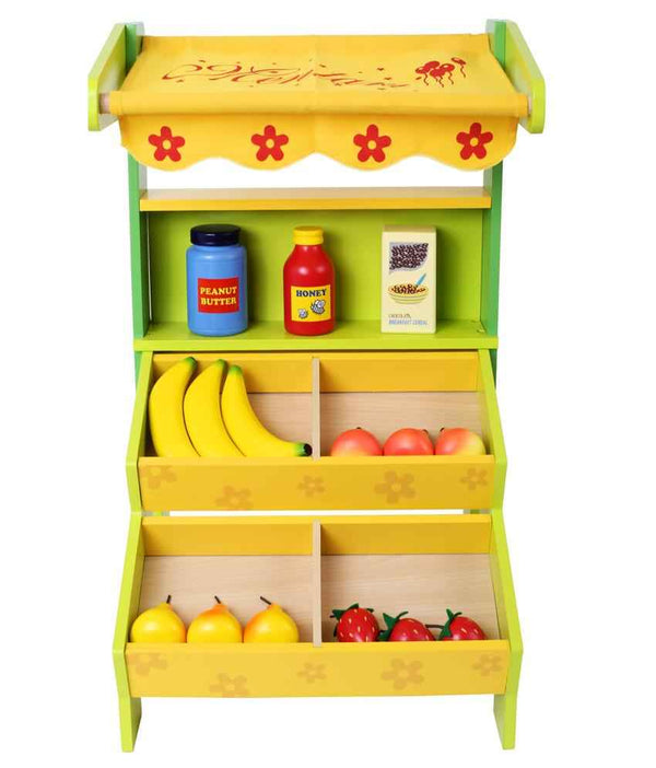 Slightly smaller than the Max selling booth, this gorgeous stall still delivers on the magic of selling your own products. The Nora selling wooden selling booth features a single display shelf, with two divider shelves at the bottom for smaller items. One divider shelf can easily store up to 15 items, while the upper shelf offers enough space for larger items. The brightly-coloured textile awning completes this little stall. Now, who?s up for some shopping?